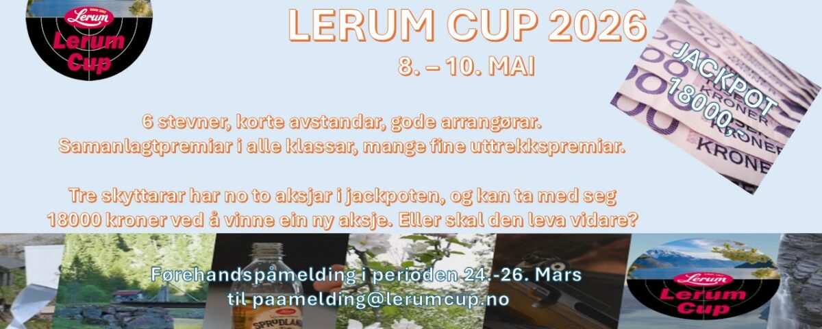 Då skriv vi 2026, og det er på tide å planlegge for vårens vakraste eventyr; Lerum Cup 2026. Som tidlegare kjent går arrangementet i år helga 8. til 10 Mai, og det blir også høve til å skyta torsdag 7.Mai. Arrangørane kjem i år, som i fjor til å skyta kveldane i forkant.
